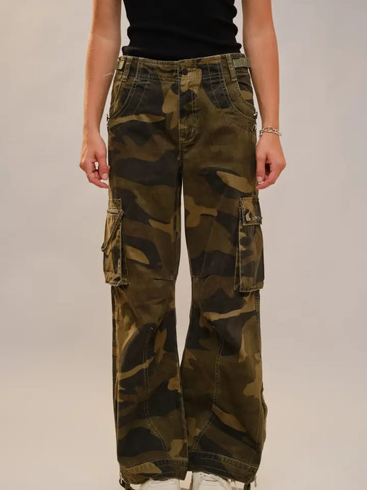 Blue B - Camo Print Barrel Leg Pants with Grommets