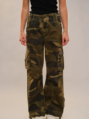 Blue B - Camo Cargo Pants With Studs And Drawstring