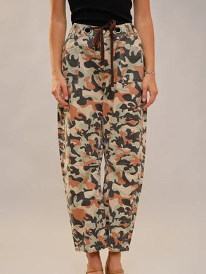 Blue B - Camo Print Barrel Leg Pants with Grommets
