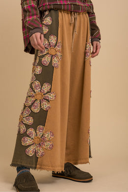 Davi & Dani - Milli Mix Matched Flower Patch Sweatpants - Sage