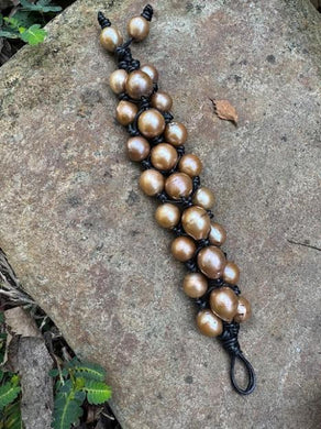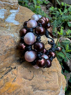 Three strand natural chocolate and pink baroque fresh water pearl bracelet