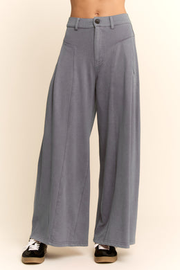 Davi & Dani - Blue High Waisted Front Slit Wide Leg Denim Pants