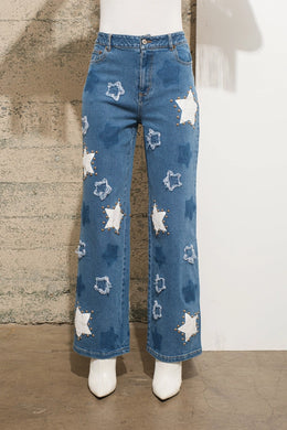 Blue B - Mid Rise Stretch Star Print Studded Jeans