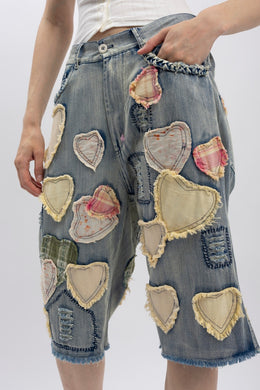 Playful Heart Patchwork Long Shorts
