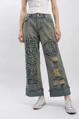 Peace Patch Distressed Denim Pants