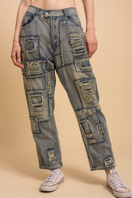 Blue Velvet - Distressed Patchwork Washed Jeans