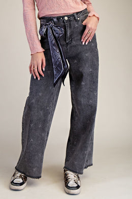 Easel - Bow Printed Stretch Denim Pants
