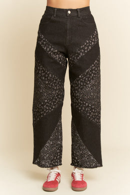 Playful Heart Patch Embroidery Mix Denim Pants