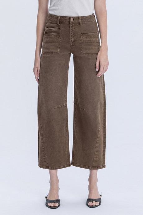 High Rise Front Welt Pocket Detail Barrel Jeans