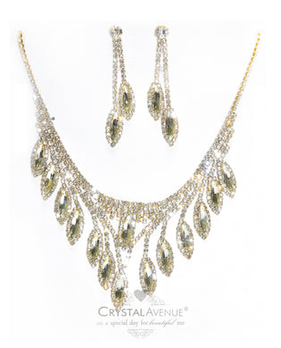 Gold Teardrop Rhinestone Necklace & Earrings Set