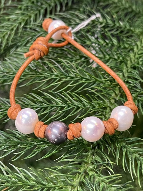 HC Handmade Freshwater White and Tahitian Pearl Bracelet - Single