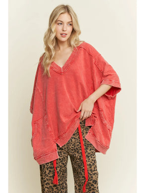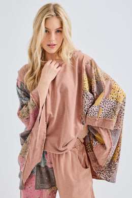 J. Her - Mineral Washed Boho Patch Poncho Top