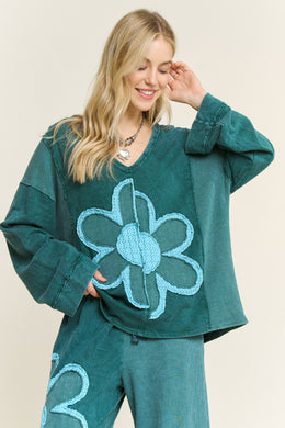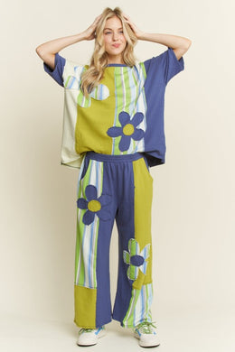 J. Her - Striped Flower Patched Washed Casual Top