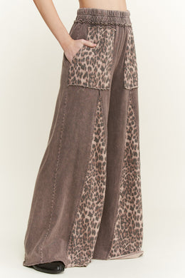 J. Her - Mineral Washed Leopard Animal Print Flare Pants