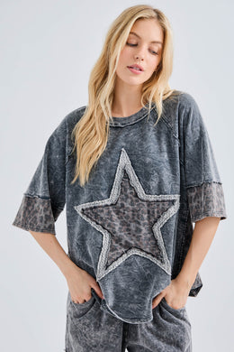 J. Her - Mineral Washed Leopard Star Halfsleeve Top