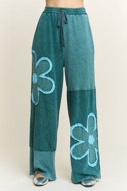 J. HER - Striped Flower Patched Washed Casual Pants