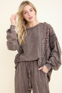 J. Her - Mineral Washed Cheetah Leopard Fringe Tassel Top