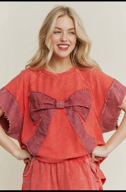 Mineral Washed Chambray Ribbon Bow Top