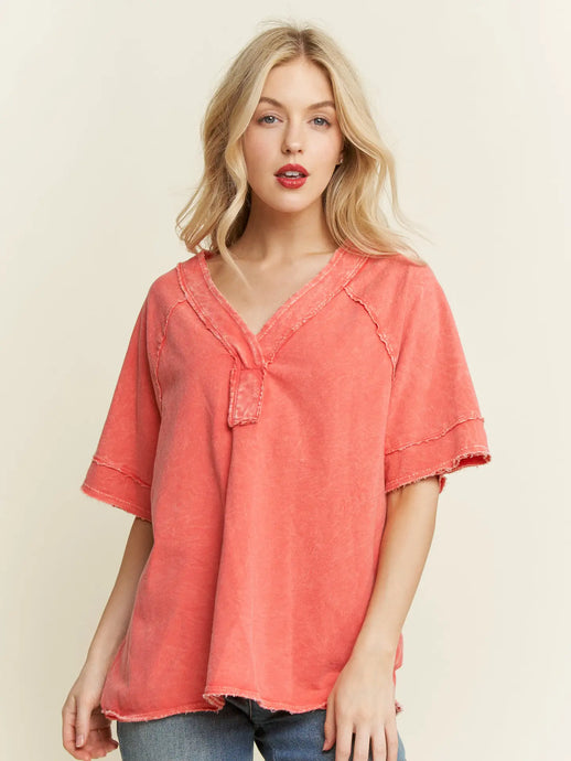 Mineral Washed V-neck Best Basic Soft T-shirt