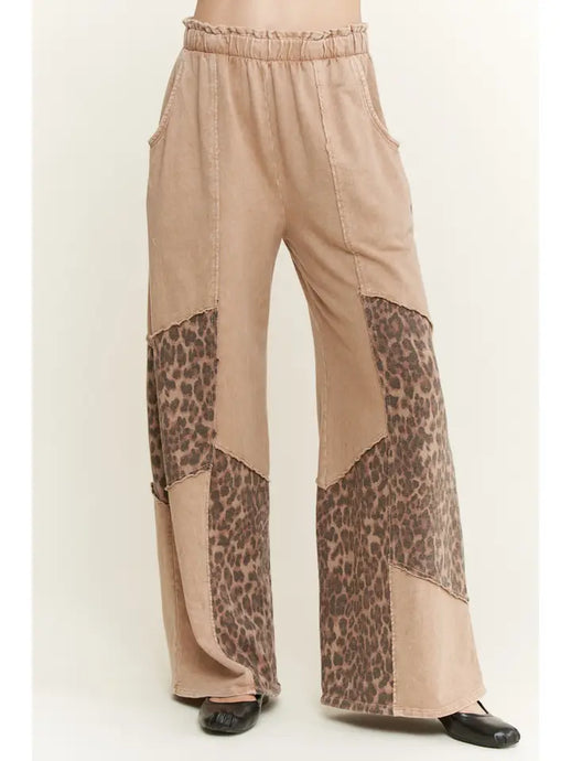 J. Her - Mineral Washed Leopard Animal Patchwork Pants