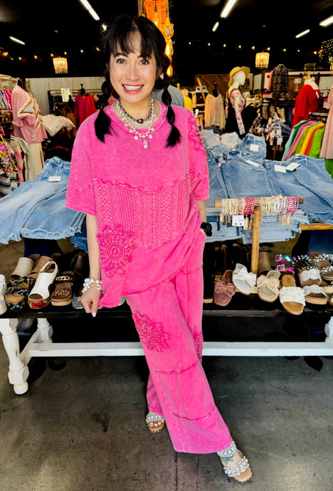 J. Her - Mineral Washed Lace Crochet cut Short sleeve top Match