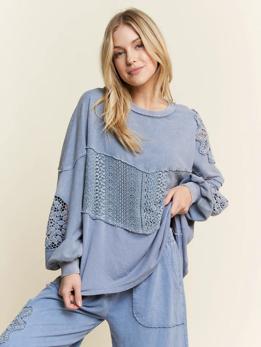 Mineralwashed Lace Cut French Terry Top