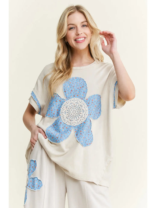 J. her - Cotton French Terry Flower Doily Patched top