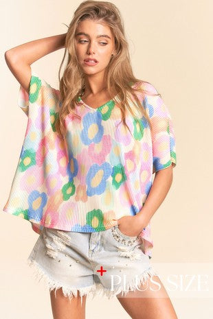 Floral Print Plisse Top