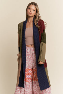 J.NNA - Color Block Long Body Open Cardigan