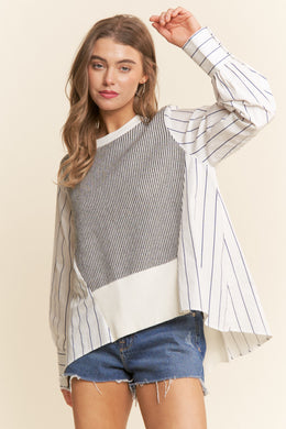 J.NNA - Multi Pattern Color Block Long Sleeve Top