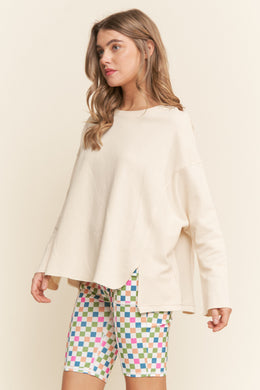 J.NNA - Loose Fit Slit Detailed Long Sleeve Top