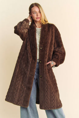 Single Breasted Fuzzy Fur Rib Pattern Long Coat