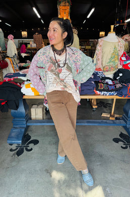 BLUEVELVET - HEART PEACE PATCHWORK TOP - MOCHA