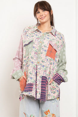 BLUEVELVET - MULTI PRINT PATCHWORK SHIRT - BABY PINK