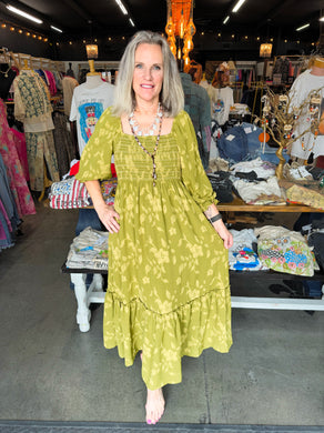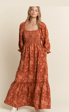 FLORAL PRINT SMOCKED TIERED MAXI DRESS