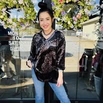 HC - Roxy Satin Leopard Sleeve Shirt - Hot Pink
