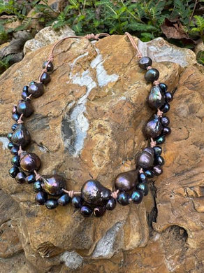 Two Strand natural Chocolate Fresh Water Pearl Necklace
