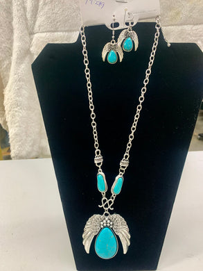 Fashion Jewelry - Turquoise and Silver Matching Necklace and Earrings Set