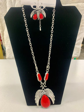 Fashion Jewelry -Silver and Red Matching Necklace and Earrings Set