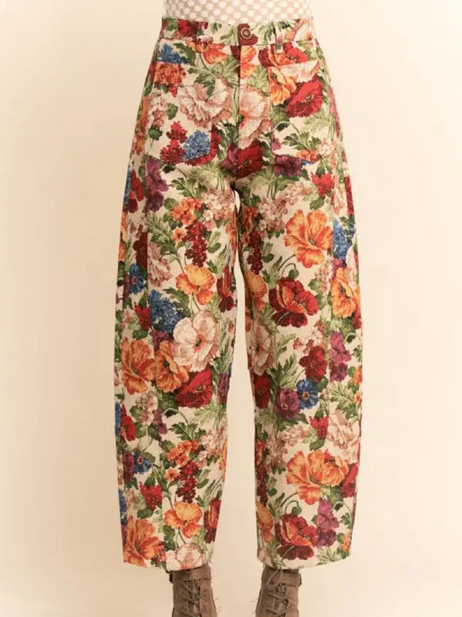 Davi & Dani - Tie-dyed Printed Denim Wide Mid-high Waist Pants