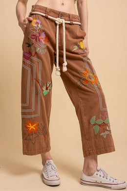 BLUEVELVET - EMBROIDERY PANTS WITH ROPE BELT - BRICK