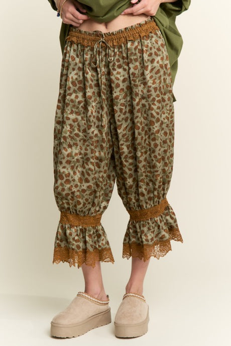 Multi Pattern Lace Trim Detail Capri Bottoms