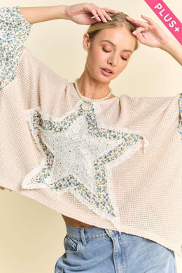 Multi Star Patchwork Ditsy Sleeve Knit Top