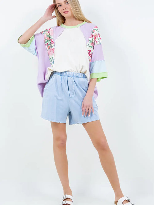 Raglan Top with Floral On the Sleeves