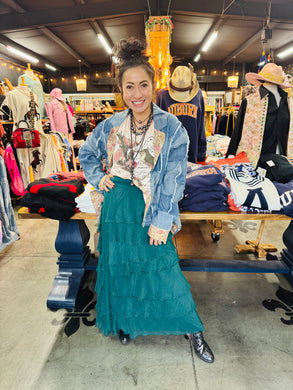 Karamel Collection - Petroleum Blue Silk Ruffle Skirt Fall Colors Skirt