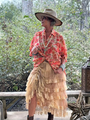Jaded Gypsy - Floral Imprints Skirt - Tea Stain
