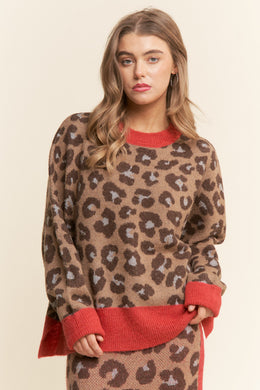 J.nna - Pink Leopard Print V Neck Patchwork Sweater Top