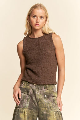 Davi & Dani - Mocha Granny V Neck Sweater Top