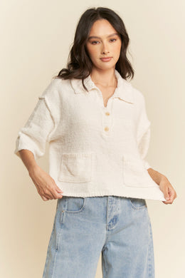 Pixi + Ivy - Mock Neck 3/4 Sleeve Sweater Top White