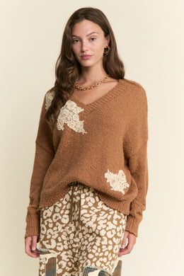 J. Her - Mineral Washed Daisy Patchwork Sweater